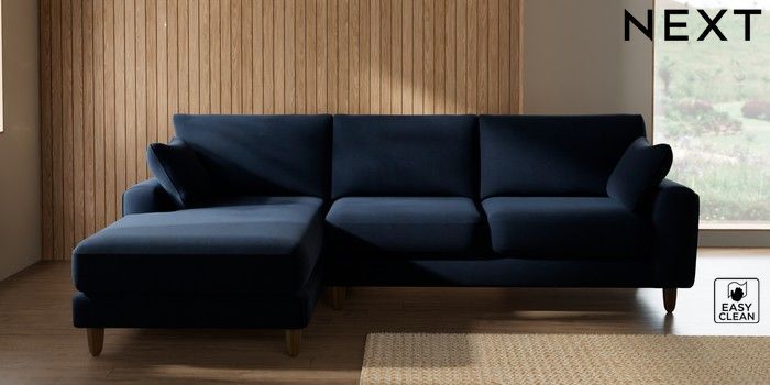 7.2.10 Campbell Medium Sofa Chaise - Left Hand Fine Chenille Easy Clean Dark Navy Blue High Leg - Mid | Made Click here to use our website with more accessibility support, for example screen readers