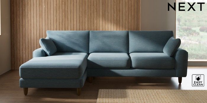 7.2.10 Campbell Medium Sofa Chaise - Left Hand Fine Chenille Easy Clean Mid Blue High Leg - Mid | Made Click here to use our website with more accessibility support, for example screen readers