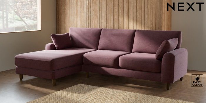 7.2.10 Campbell Medium Sofa Chaise - Left Hand Fine Chenille Easy Clean Mid Mulberry Purple High Leg - Mid | Made Click here to use our website with more accessibility support, for example screen readers