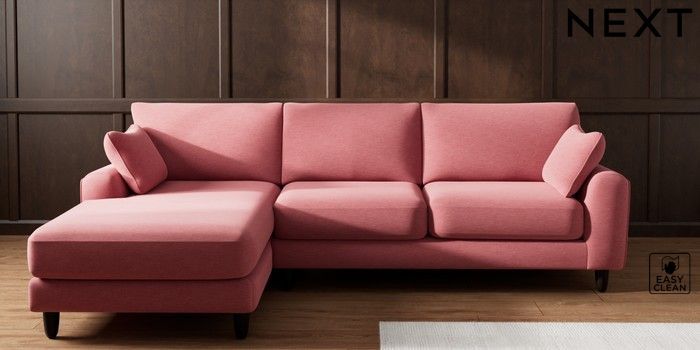 7.2.10 Campbell Medium Sofa Chaise - Left Hand Fine Chenille Easy Clean Mid Pink High Leg - Dark | Made Click here to use our website with more accessibility support, for example screen readers