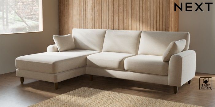 7.2.10 Campbell Medium Sofa Chaise - Left Hand Fine Chenille Easy Clean Oyster High Leg - Mid | Made Click here to use our website with more accessibility support, for example screen readers