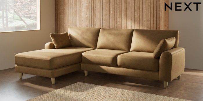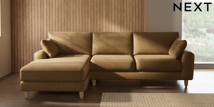 7.2.10 Campbell Medium Sofa Chaise - Left Hand Luxe Chenille Honey Yellow High Leg - Light | Made Click here to use our website with more accessibility support, for example screen readers