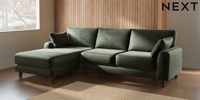 7.2.10 Campbell Medium Sofa Chaise - Left Hand Luxe Chenille Mid Green High Leg - Mid | Made Click here to use our website with more accessibility support, for example screen readers