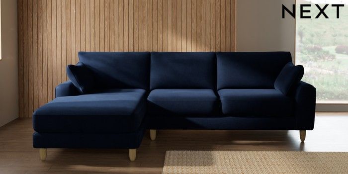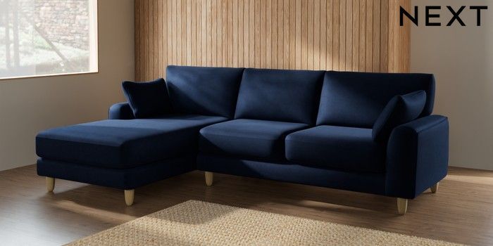 7.2.10 Campbell Medium Sofa Chaise - Left Hand Luxe Chenille Navy Blue High Leg - Light | Made Click here to use our website with more accessibility support, for example screen readers