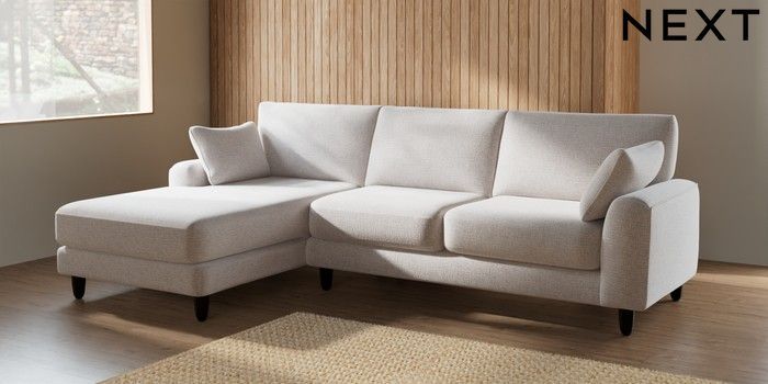 7.2.10 Campbell Medium Sofa Chaise - Left Hand Multi Weave Oyster High Leg - Dark | Made Click here to use our website with more accessibility support, for example screen readers