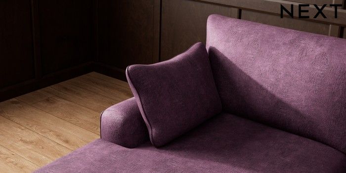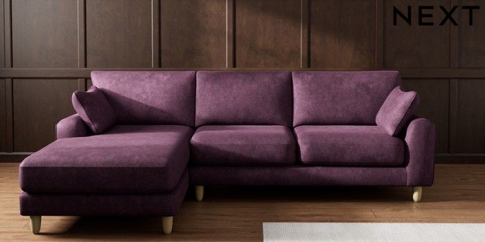 7.2.10 Campbell Medium Sofa Chaise - Left Hand Plush Chenille Dark Plum Purple High Leg - Light | Made Click here to use our website with more accessibility support, for example screen readers