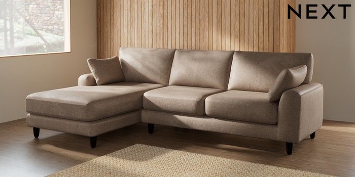 7.2.10 Campbell Medium Sofa Chaise - Left Hand Plush Chenille Mid Natural High Leg - Dark | Made Click here to use our website with more accessibility support, for example screen readers