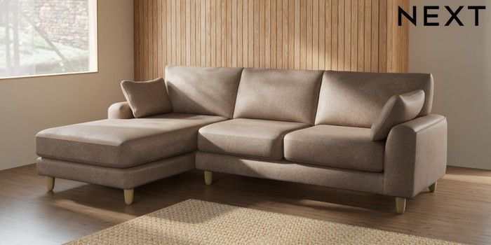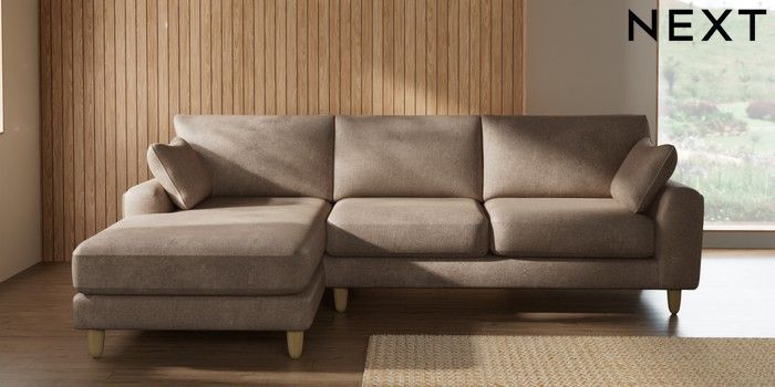 7.2.10 Campbell Medium Sofa Chaise - Left Hand Plush Chenille Mid Natural High Leg - Light | Made Click here to use our website with more accessibility support, for example screen readers