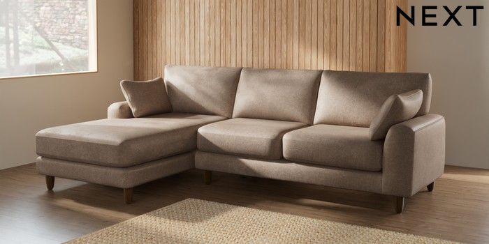 7.2.10 Campbell Medium Sofa Chaise - Left Hand Plush Chenille Mid Natural High Leg - Mid | Made Click here to use our website with more accessibility support, for example screen readers