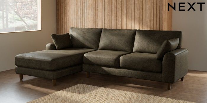 7.2.10 Campbell Medium Sofa Chaise - Left Hand Plush Chenille Moss Green High Leg - Mid | Made Click here to use our website with more accessibility support, for example screen readers