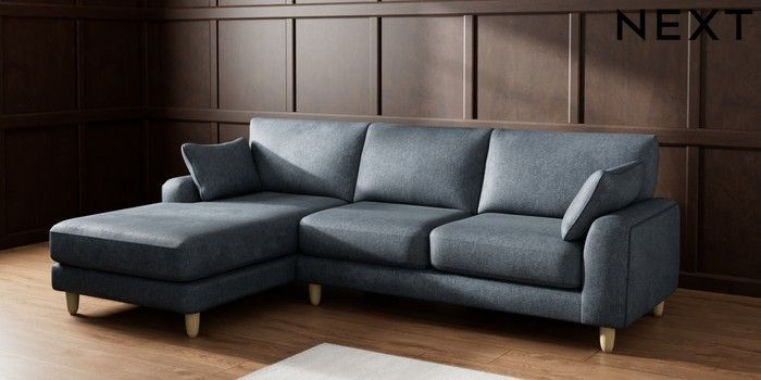 7.2.10 Campbell Medium Sofa Chaise - Left Hand Plush Chenille Slate Blue High Leg - Light | Made Click here to use our website with more accessibility support, for example screen readers
