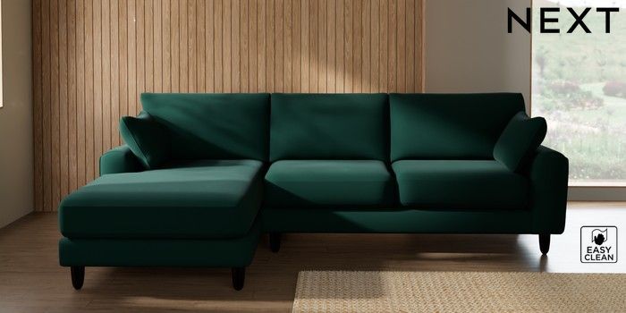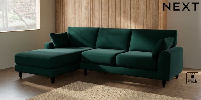 7.2.10 Campbell Medium Sofa Chaise - Left Hand Plush Velvet Easy Clean Bottle Green High Leg - Dark | Made Click here to use our website with more accessibility support, for example screen readers
