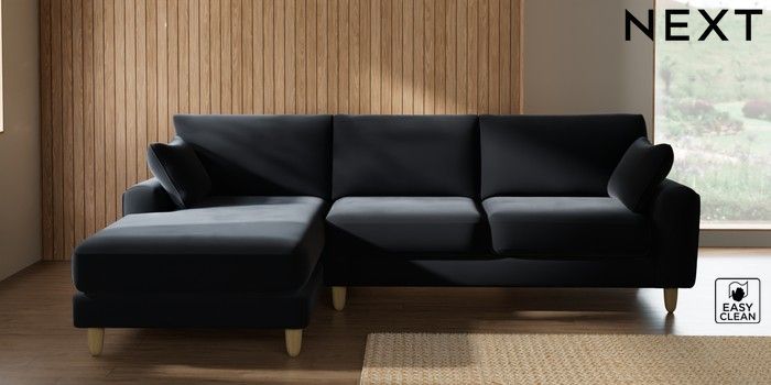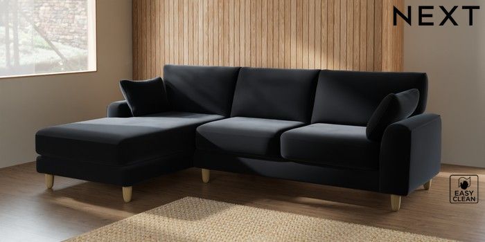 7.2.10 Campbell Medium Sofa Chaise - Left Hand Plush Velvet Easy Clean Charcoal Grey High Leg - Light | Made Click here to use our website with more accessibility support, for example screen readers