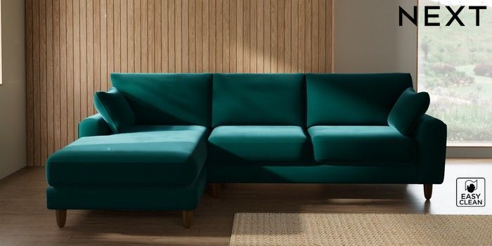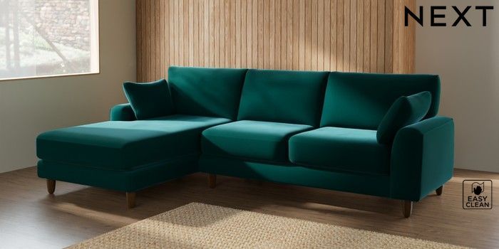 7.2.10 Campbell Medium Sofa Chaise - Left Hand Plush Velvet Easy Clean Juniper Green High Leg - Mid | Made Click here to use our website with more accessibility support, for example screen readers