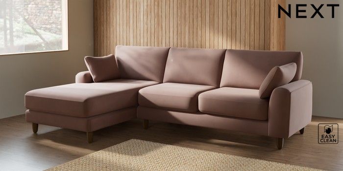 7.2.10 Campbell Medium Sofa Chaise - Left Hand Plush Velvet Easy Clean Mid Natural High Leg - Mid | Made Click here to use our website with more accessibility support, for example screen readers