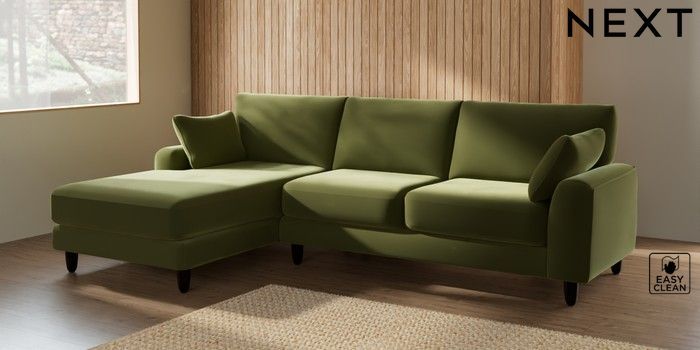 7.2.10 Campbell Medium Sofa Chaise - Left Hand Plush Velvet Easy Clean Mid Olive Green High Leg - Dark | Made Click here to use our website with more accessibility support, for example screen readers