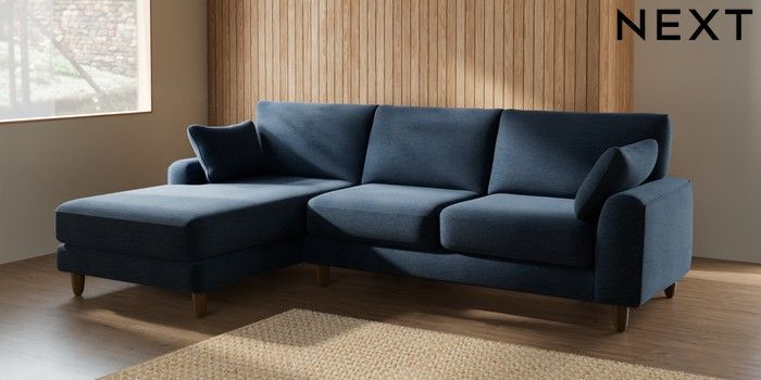 7.2.10 Campbell Medium Sofa Chaise - Left Hand Ripple Chenille Dark Blue High Leg - Mid | Made Click here to use our website with more accessibility support, for example screen readers