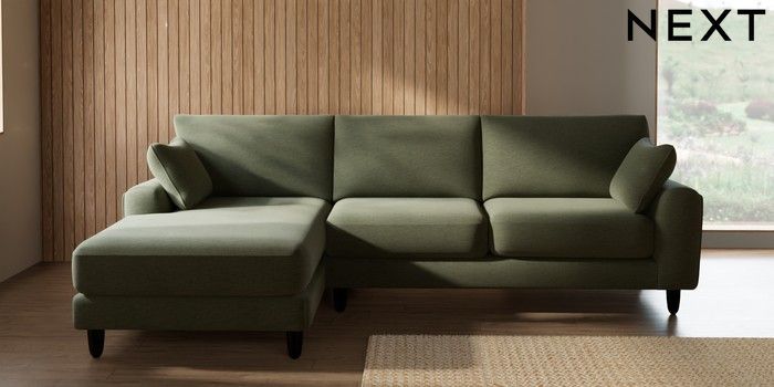 7.2.10 Campbell Medium Sofa Chaise - Left Hand Ripple Chenille Mid Moss Green High Leg - Dark | Made Click here to use our website with more accessibility support, for example screen readers