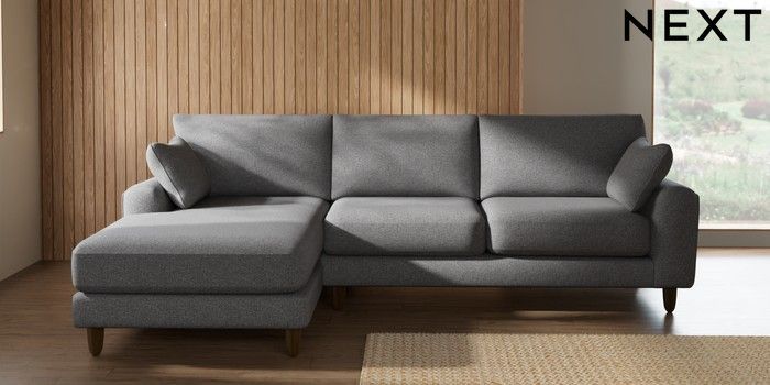 7.2.10 Campbell Medium Sofa Chaise - Left Hand Studio Chenille Mid Grey High Leg - Mid | Made Click here to use our website with more accessibility support, for example screen readers