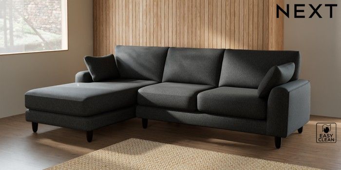 7.2.10 Campbell Medium Sofa Chaise - Left Hand Tweedy Blend Easy Clean Charcoal Grey High Leg - Dark | Made Click here to use our website with more accessibility support, for example screen readers