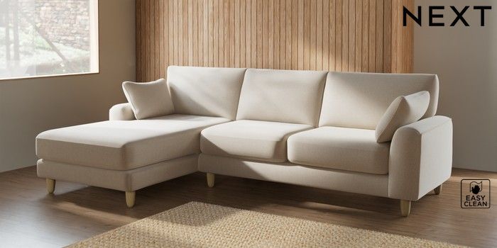 7.2.10 Campbell Medium Sofa Chaise - Left Hand Tweedy Blend Easy Clean Oyster High Leg - Light | Made Click here to use our website with more accessibility support, for example screen readers