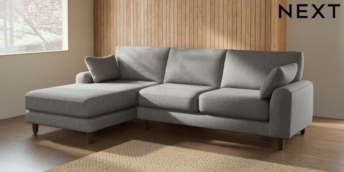 7.2.10 Campbell Medium Sofa Chaise - Left Hand Tweedy Chenille Mid Grey High Leg - Mid | Made Click here to use our website with more accessibility support, for example screen readers