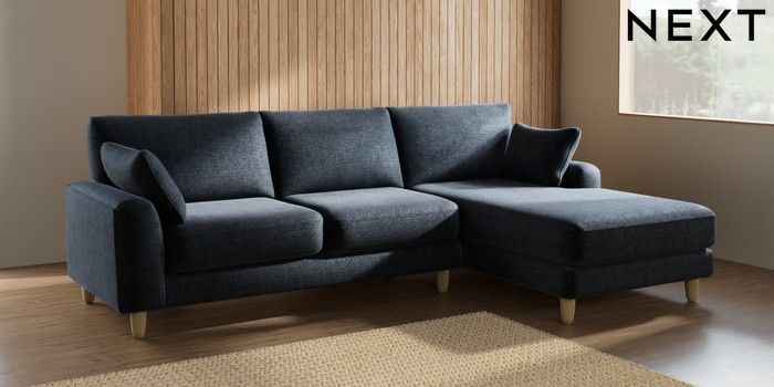 7.2.10 Campbell Medium Sofa Chaise - Right Hand Boucle Chenille Dark Slate Blue High Leg - Light | Made Click here to use our website with more accessibility support, for example screen readers