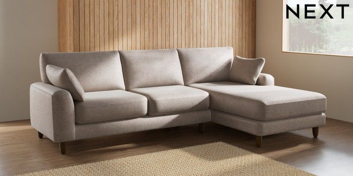 7.2.10 Campbell Medium Sofa Chaise - Right Hand Boucle Chenille Light Natural High Leg - Mid | Made Click here to use our website with more accessibility support, for example screen readers