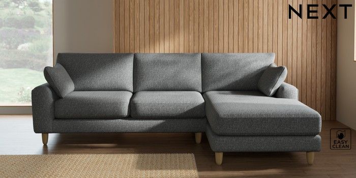 7.2.10 Campbell Medium Sofa Chaise - Right Hand Chunky Boucle Easy Clean Mid Grey High Leg - Light | Made Click here to use our website with more accessibility support, for example screen readers
