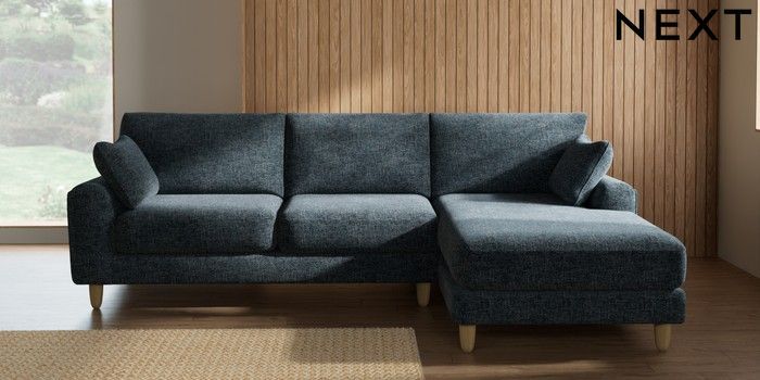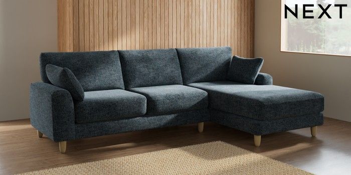 7.2.10 Campbell Medium Sofa Chaise - Right Hand Chunky Chenille Dark Navy Blue High Leg - Light | Made Click here to use our website with more accessibility support, for example screen readers