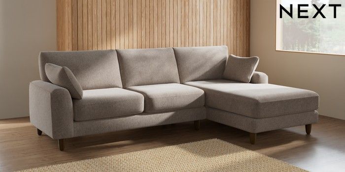 7.2.10 Campbell Medium Sofa Chaise - Right Hand Chunky Chenille Light Dove High Leg - Mid | Made Click here to use our website with more accessibility support, for example screen readers