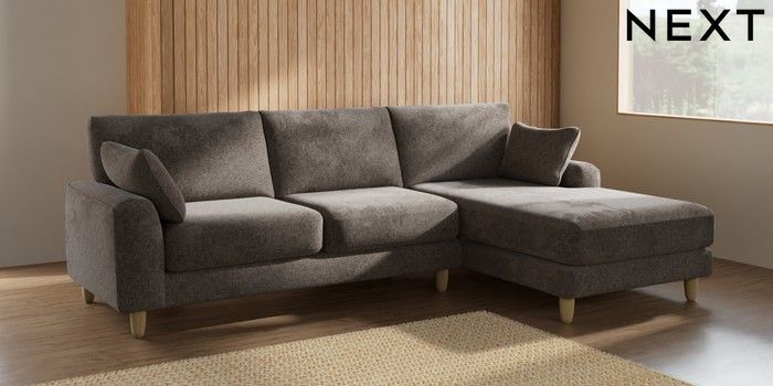 7.2.10 Campbell Medium Sofa Chaise - Right Hand Chunky Chenille Mink Brown High Leg - Light | Made Click here to use our website with more accessibility support, for example screen readers