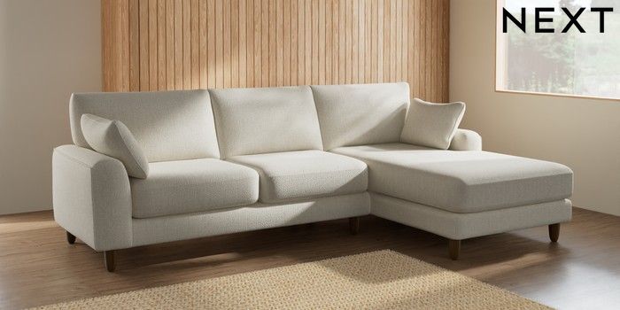 7.2.10 Campbell Medium Sofa Chaise - Right Hand Chunky Texture Oyster High Leg - Mid | Made Click here to use our website with more accessibility support, for example screen readers