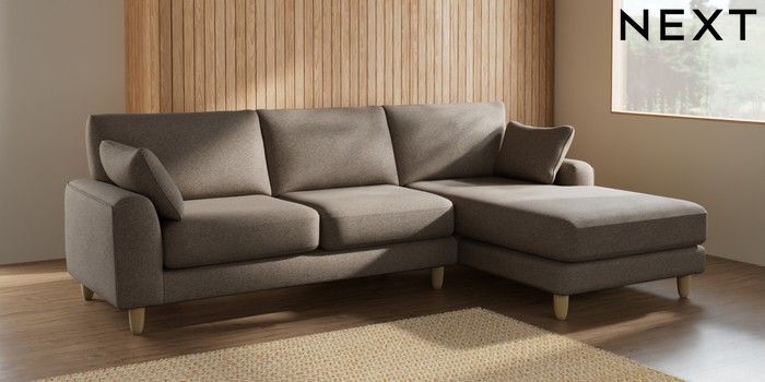 7.2.10 Campbell Medium Sofa Chaise - Right Hand Chunky Weave Dark Natural High Leg - Light | Made Click here to use our website with more accessibility support, for example screen readers