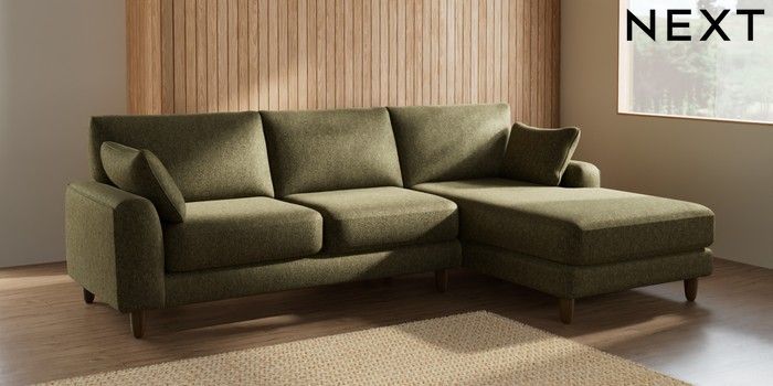 7.2.10 Campbell Medium Sofa Chaise - Right Hand Cotswold Chenille Dark Green High Leg - Mid | Made Click here to use our website with more accessibility support, for example screen readers