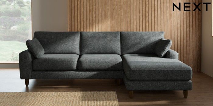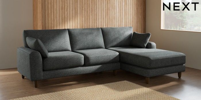 7.2.10 Campbell Medium Sofa Chaise - Right Hand Cotswold Chenille Dark Grey High Leg - Mid | Made Click here to use our website with more accessibility support, for example screen readers