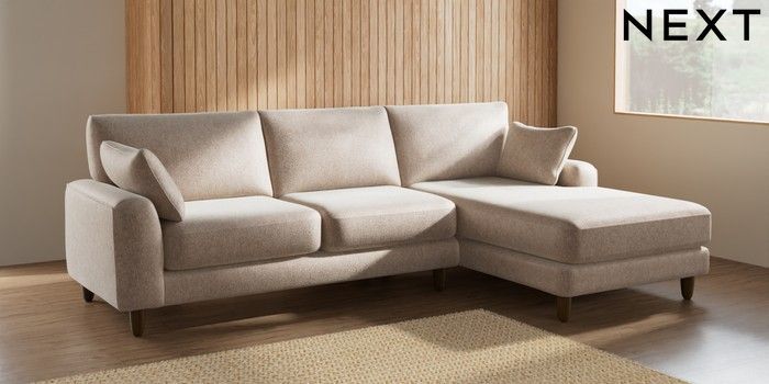 7.2.10 Campbell Medium Sofa Chaise - Right Hand Cotswold Chenille Light Natural High Leg - Mid | Made Click here to use our website with more accessibility support, for example screen readers