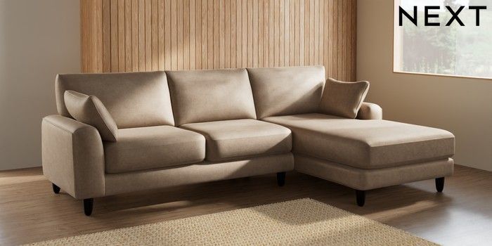 7.2.10 Campbell Medium Sofa Chaise - Right Hand Luxe Chenille Mid Camel Beige High Leg - Dark | Made Click here to use our website with more accessibility support, for example screen readers