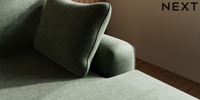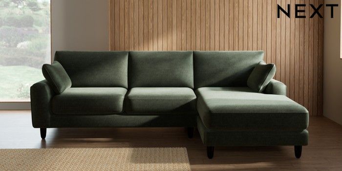 7.2.10 Campbell Medium Sofa Chaise - Right Hand Luxe Chenille Mid Green High Leg - Dark | Made Click here to use our website with more accessibility support, for example screen readers
