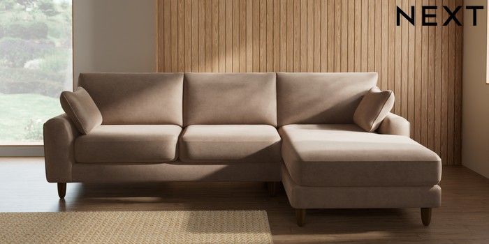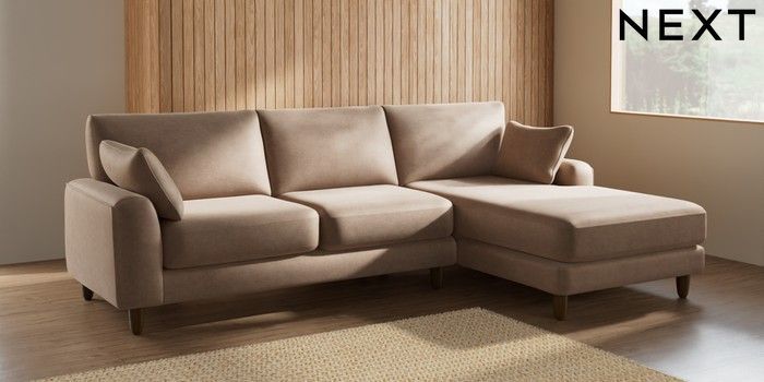 7.2.10 Campbell Medium Sofa Chaise - Right Hand Luxe Chenille Mid Natural High Leg - Mid | Made Click here to use our website with more accessibility support, for example screen readers