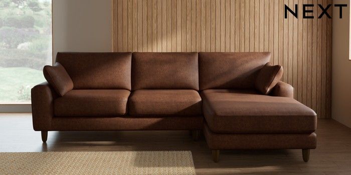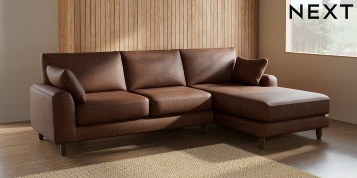 7.2.10 Campbell Medium Sofa Chaise - Right Hand Monza Faux Leather Easy Clean Chestnut Brown High Leg - Mid | Made Click here to use our website with more accessibility support, for example screen readers