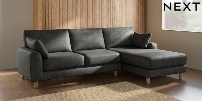 7.2.10 Campbell Medium Sofa Chaise - Right Hand Plush Chenille Dark Grey High Leg - Light | Made Click here to use our website with more accessibility support, for example screen readers