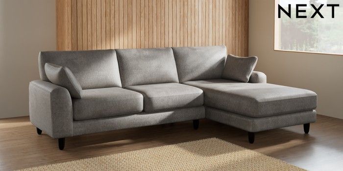 7.2.10 Campbell Medium Sofa Chaise - Right Hand Plush Chenille Light Grey High Leg - Dark | Made Click here to use our website with more accessibility support, for example screen readers