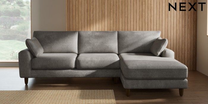 7.2.10 Campbell Medium Sofa Chaise - Right Hand Plush Chenille Light Grey High Leg - Mid | Made Click here to use our website with more accessibility support, for example screen readers