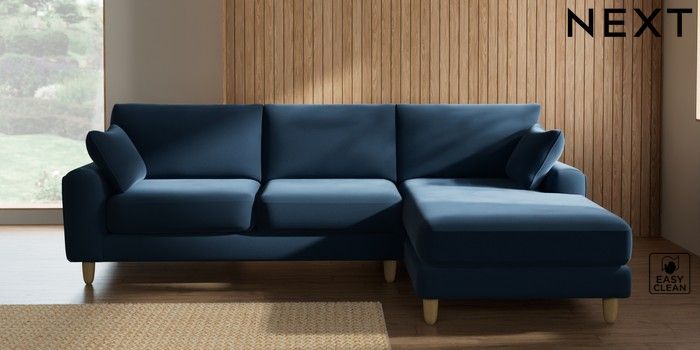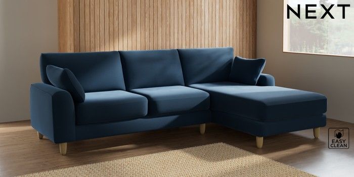 7.2.10 Campbell Medium Sofa Chaise - Right Hand Plush Velvet Easy Clean Airforce Blue High Leg - Light | Made Click here to use our website with more accessibility support, for example screen readers