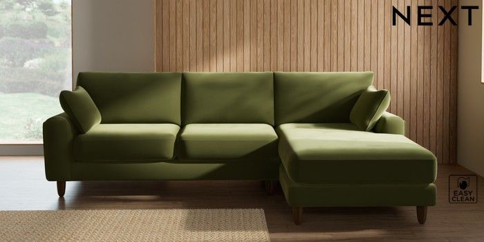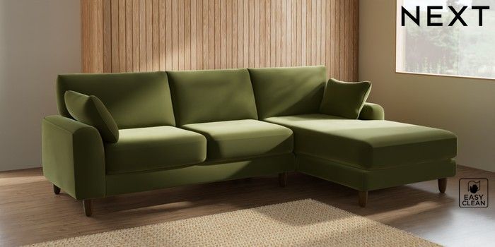 7.2.10 Campbell Medium Sofa Chaise - Right Hand Plush Velvet Easy Clean Mid Olive Green High Leg - Mid | Made Click here to use our website with more accessibility support, for example screen readers
