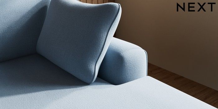 7.2.10 Campbell Medium Sofa Chaise - Right Hand Relaxed Linen Look Mid Blue High Leg - Mid | Made Click here to use our website with more accessibility support, for example screen readers