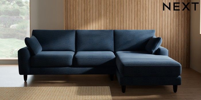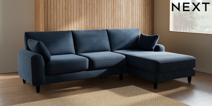 7.2.10 Campbell Medium Sofa Chaise - Right Hand Ripple Chenille Dark Blue High Leg - Dark | Made Click here to use our website with more accessibility support, for example screen readers