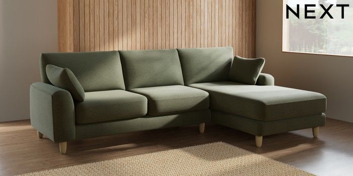 7.2.10 Campbell Medium Sofa Chaise - Right Hand Ripple Chenille Mid Moss Green High Leg - Light | Made Click here to use our website with more accessibility support, for example screen readers