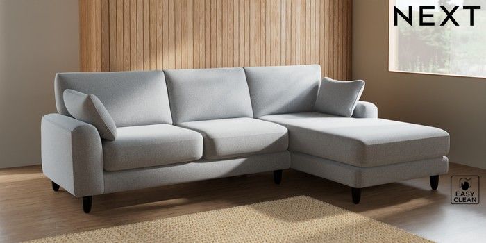 7.2.10 Campbell Medium Sofa Chaise - Right Hand Tweedy Blend Easy Clean Light Silver Grey High Leg - Dark | Made Click here to use our website with more accessibility support, for example screen readers